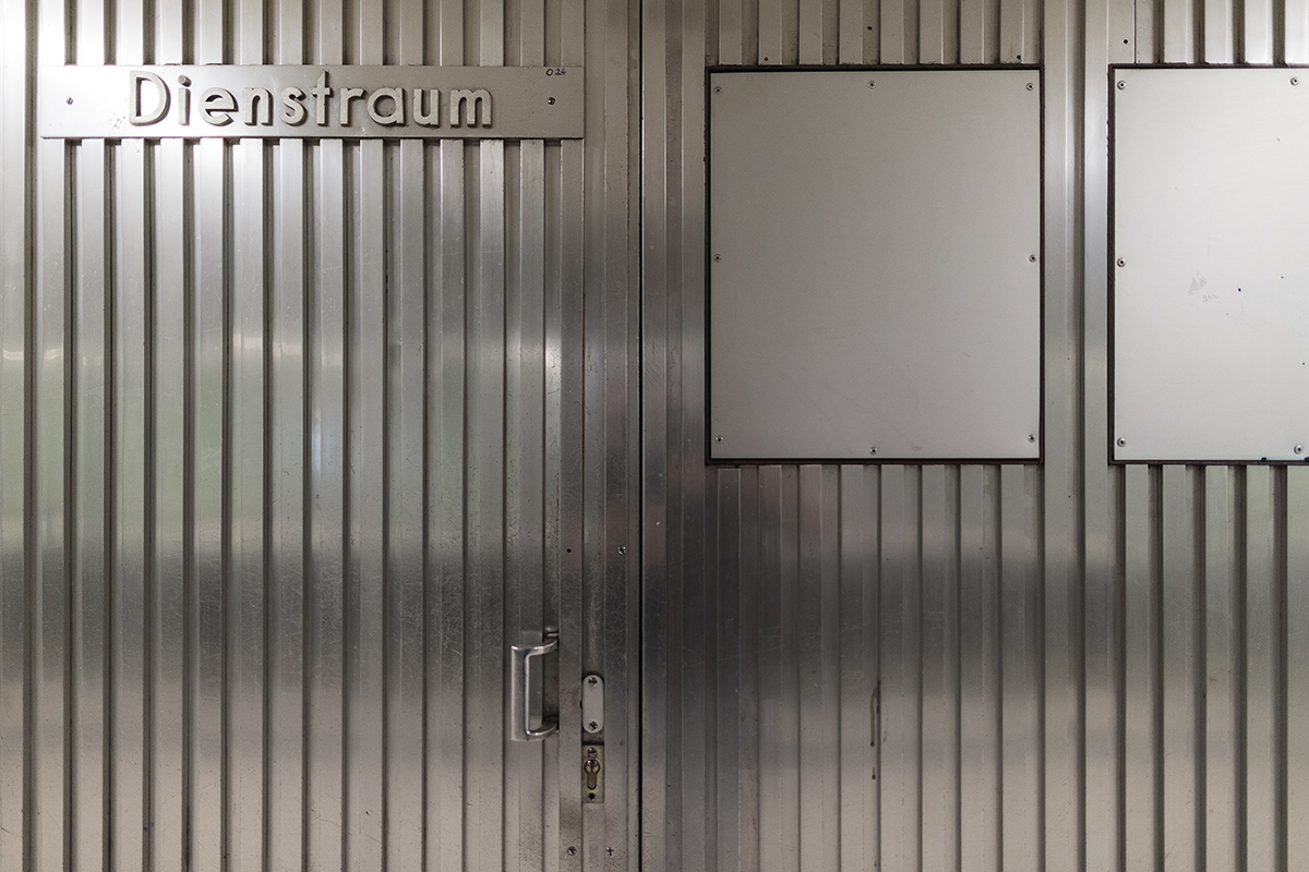 - Metal door of a service room inside Kurfürstendamm underground station on Berlin U1 line
